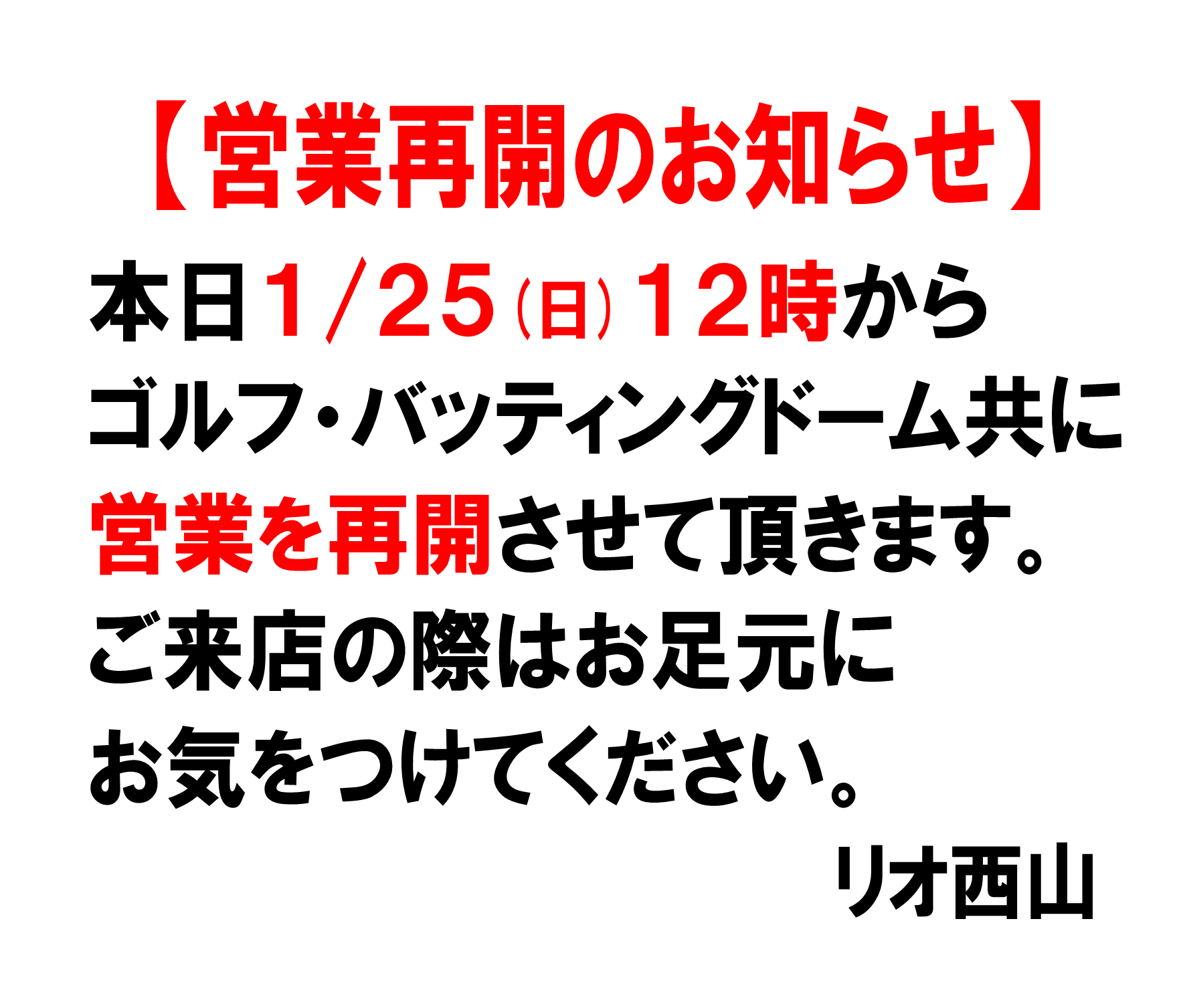 営業再開のお知らせ